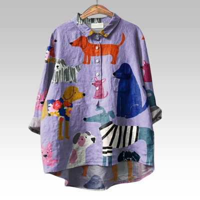 JOANA - ABITO STAMPATO CON SCOLLO ROTONDO IN COTONE E LINO